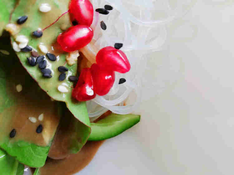 ברוח החג יצרתי את הסלט המהמם הבא, שהוא סלט אטריות מעמילן שעועית ללא גלוטן שמתאים לקיץ-סתיו, הוא מבוסס על רוטב הטחינה הסיני שיש לו טעם שומשומי חזק, עם טוויסט רימוני לראש השנה. המלפפונים יהפכו פריכים בזכות מי הקרח אז כדאי לא לוותר עליהם. את המלח כדאי להוסיף בהדרגה כדי שלא ייצא מלוח מדי.