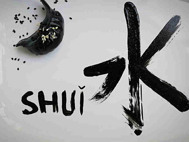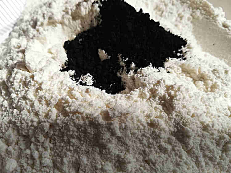 כדי לחבר את הכיסונים לפאזת המים שצבעה כחול-שחור הכנתי בצק שנצב בשחור בעזרת אבקת פחם פעיל שנותנת לכיסון מראה גותי-יוקרתי. מאוד נחמד ומסקרן. אבקת הפחם הפעיל לא מסוכנת לשימוש בכמות קטנה (חצי כפית על רבע קילו קמח) ואפשר למצוא אותה בחנויות הבישול, אם רוצים צבעי מאכל נוספים מהטבע אפשר להשתמש גם באבקת אבץ או בדיו דיונון (SEPIA) שיתנו תוצאה דומה.