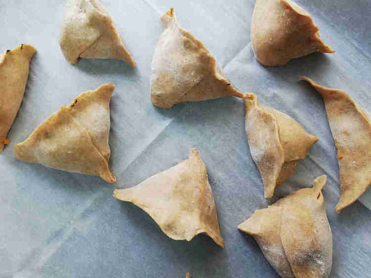 7. מעבירים לתבנית ויוצרים עוד סמוסות עד לסיום המילוי.