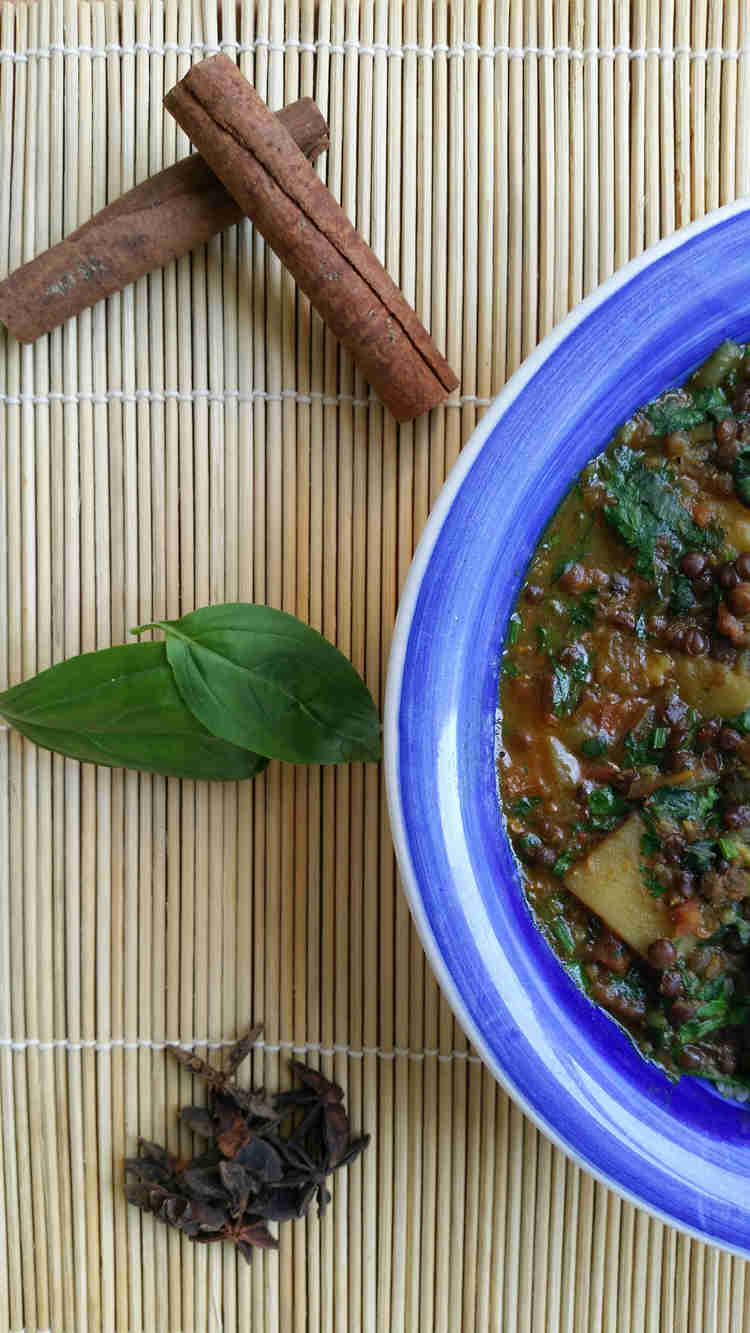 אח הדברים היפים במנה הזו הוא שיש בצלחת הכל, גם שומנים (שמן וחלב קוקוס), גם חלבונים (עדשים) וגם פחמימות (תפוחי אדמה). שילוב נהדר שעושה נעים בבטן.